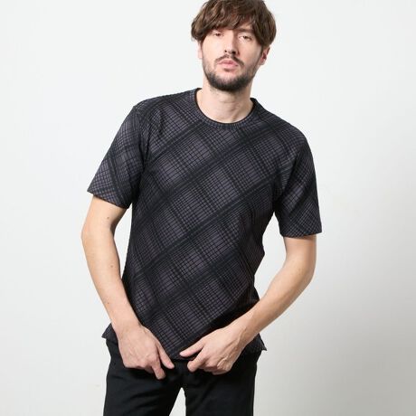 通常のチェック柄との差別化を図ったバイヤス仕様が一際目を引く、クルーネックプルオーバーになります。
