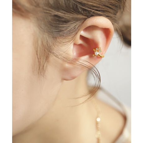 パールとビジューが輝き、耳元に華やぎを与えるイヤーカフ。