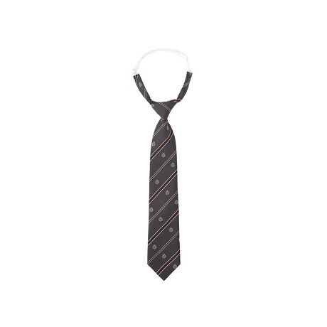 着脱が簡単なゴム仕様のネクタイ。「EB」の文字と王冠の柄入り。細部までこだわって作ったオリジナルの柄です。生地から縫製まで全て日本製。1つ1つ手作業で丁寧に作られているので、温かみのある製品に仕上がっています。