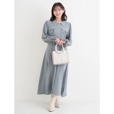 胸元ポケットのリボンがガーリーなアクセントになった美ラインワンピース?