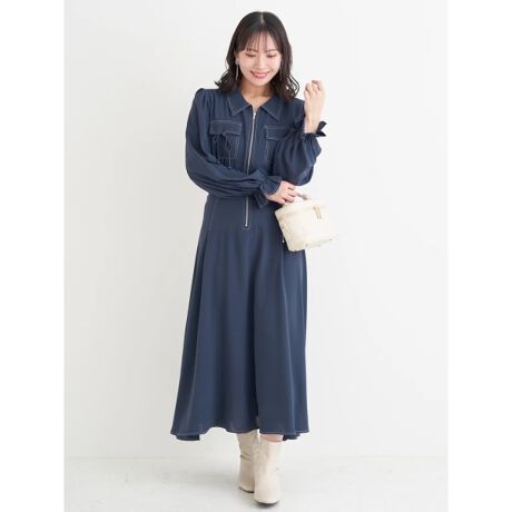 胸元ポケットのリボンがガーリーなアクセントになった美ラインワンピース?
