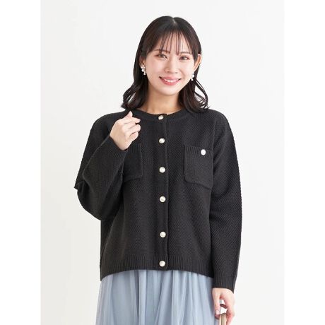 カノコ編みデザインが上品な雰囲気を演出するカーディガン。