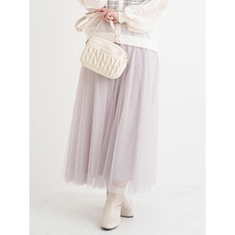 2枚チュールを重ねたふんわりシルエットがフェミニンな万能スカート
