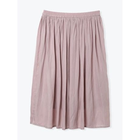 サテン素材で上品に仕上げたギャザースカート