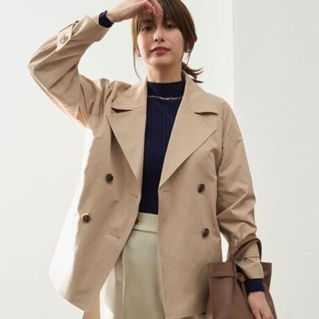 ・どんなシーンにも着回し対応できるミドル丈のトレンチコート。