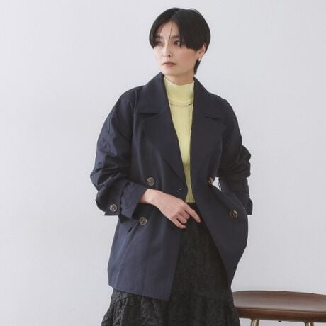 ・どんなシーンにも着回し対応できるミドル丈のトレンチコート。