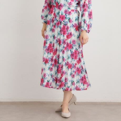 ブラーリングされたような花々が爽やかなロングスカートです。