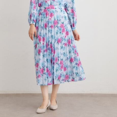 ウエストは左脇コンシールファスナー仕様で、きれいめな場での着用にぴったり。華やかさと爽やかさを兼ね備えたデザインです。