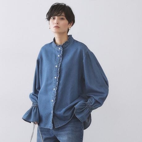 マルイウェブチャネル   /   オペークドットクリップ   /   トップス   /   ブラウス   /   セルロース混デニムフリルブラウス【洗濯機OK】