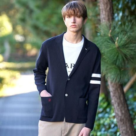 伝統的なテーラードジャケットのデザインを取り入れたニットのため、オフィスでのキレイめスタイルから休日のカジュアルスタイルまで、幅広い着こなしに対応します。
