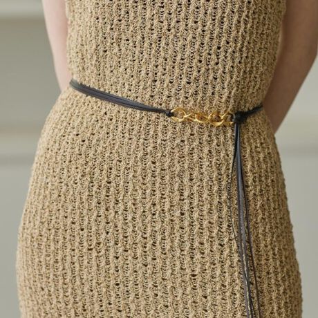 オリジナルのバックルが印象的な、アクセサリーライクなベルト。
