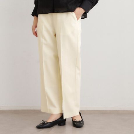 センタープレスが入ったきちんと感のあるデザインで、腰回りはタック入りで程よいゆとりを持たせています。