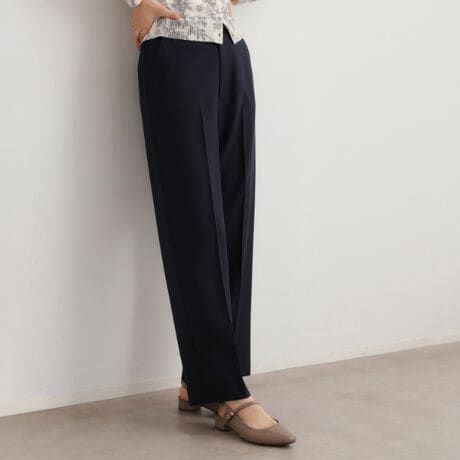 センタープレスが入ったきちんと感のあるデザインで、腰回りはタック入りで程よいゆとりを持たせています。