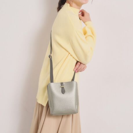 配色パーツが映える!シボ合皮の3層コンパクトショルダー。