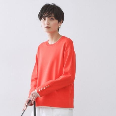 通勤にも、デイリーにも活躍!袖口の金釦とバイカラーがポイントの上品ニット