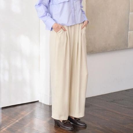 すっきりキレイ見えが叶う!イージーな穿き心地が魅力のタックワイドパンツ