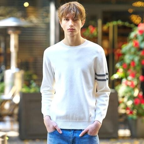 細部にもこだわり、袖口の配色ラインや裾に配したブランドイニシャルのステッチがデザインのポイントとなっています。