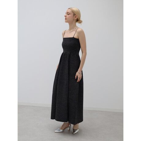 ホールガーメント仕様のふっくらとしたボリュームシルエットが印象的な膝丈のベアドレス。前回に続き、今回はラメ糸による上品さと華やかさを加えて新作が入荷。華奢なショルダーストラップ使いでリラクシーな着心地と大人見えを兼ね備えています。一枚着だけでなくシャツやカットソーなどとのレイヤードも美しく決まり、ロングシーズン着回しをお楽しみいただけます。日本産「諏訪」で製作した高い技術を感じて頂けるドレスに仕上げています。