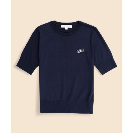 キュプラ混の発色の良い糸を使用した半袖セーター。長めの袖丈と裾の幅広リブがポイントです。安心感のある長めの着丈でありながらリブが腰周りでしっかり止まるため、お好みの位置でブラウジングができ、体型やスタイリングのテイストに合わせてバランス良く着こなせます。素材にはストレッチ性のある糸をさらに細い繊維でカバーリングしたコアストレッチヤーンを使用。適度なふくらみとハリがあり、起毛感を抑えたフラットでさらりとした表面感が魅力です。抗ピリング加工を施しているため毛玉ができにくく、滑らかでクリーンな風合いを永くお楽しみいただけます。