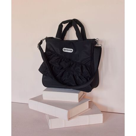 フロントに施した立体的なフリルがポイントで、シンプルなコーディネートのさりげない可愛いアクセントになります。程よくハリのある素材感で、ON・OFF問わずさらっと持ちやすく、大人でも取り入れやすいデザインに仕上げました。取り外し可能なショルダーストラップ付きで、手持ち・肩掛けの2WAYで使用可能です。