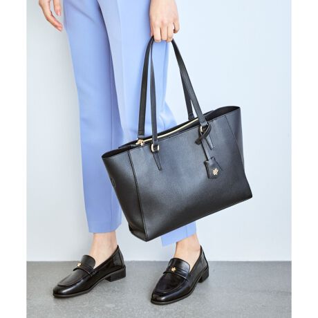 ・ベーシックに使えるカラーながら、配色デザインでお仕事コーデのさりげないポイントに。