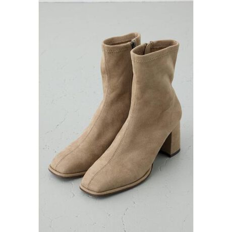 ■フェイクスエードショートストレッチブーツ■ポイントシャープなスクエアトゥとすっきりとした筒のシルエットが、足元に洗練された印象を与えるストレッチブーツ。程よく高さのあるヒールで、スタイルアップ効果もありながら歩きやすさにも配慮した一足です。■ディテールほどよくフィット感のあるストレッチ素材で、美脚ラインを演出しつつ快適な履き心地です。サイドジップ仕様で脱ぎ履きも簡単。■スタイリングシンプルなデザインなので、スカートにもパンツにも合わせやすく、デイリーから通勤スタイルまで幅広く活躍します。※お取り扱い上のご注意BEGは色の濃いものに接触していると、移染しますので、注意してください。[注意事項]※画像の商品はサンプルです。実際の商品と仕様、加工が若干異なる場合があります。※画像の商品は光の照射や角度、お使いのモニター環境により、実物と色味が異なる場合がございます。※着用、お取り扱いの際は、アテンションタグをご確認ください。