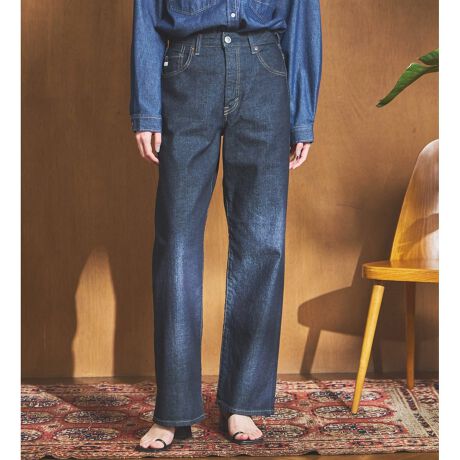 メンズデニムを彷彿とさせるルーズなシルエットながら、腰周りのゆとりと、そこからストンと落ちる美しいラインが特徴です。脚のラインを拾わないシルエットは、リラックス感を保ちつつ、着こなしを美しく演出します。デニムの加工感にもこだわり、ただ穿くだけで自然とこなれた印象へと導く計算され尽くした一本です。