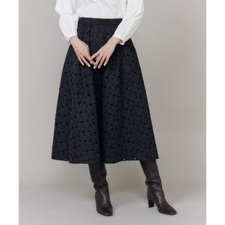 ■デザインこだわりのフラワー刺繍を施した、グログラン生地のタックスカート。上質なグログラン素材に繊細な花柄刺繍をあしらい、立体感と華やかな存在感を引き立てます。たっぷりと入れた大きめのタックにより、裾まわりに美しいボリュームが生まれ、動くたびにエレガントな印象に。ブラウスやニットをインして着こなすのはもちろん、同素材のビスチェとのセットアップや、フォックスニットとのスタイリングもおすすめです。■素材張りがありシワになりにくい、上品なグログラン素材に、丁寧に穴を開けながら上品な花柄を刺繍したオリジナル素材。・裏地あり・ポケットあり・左ファスナーあり・後ろ一部ゴム仕様・水洗い可同素材のビスチェはこちら:5154182821■サンプル撮影商品画像の商品はサンプルです。実際の商品とはサイズや色味、素材、デザイン等の仕様が若干変更になる場合がございます。■カラーについては、可能な限り実際の商品に近いカラーにて撮影をおこなっておりますが、照明の関係により実際の製品とは色味が違って見える場合があります。またパソコン・スマートフォンなどの環境により、若干製品と画像のカラーが異なる場合もございます。現物と画像のカラー差異については返品理由となりませんので、予めご了承ください。■サイズ表記はあくまで目安となります。