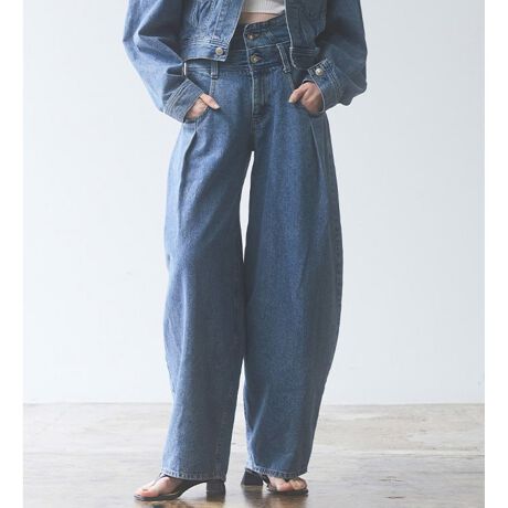 存在感のあるデニムのため、シンプルなトップスとの相性が良いです。ボリュームのあるワイドパンツには、ショート丈トップスやフィット感のあるトップスと合わせることがおすすめです。