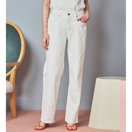 大人の女性に「上質さ」と「抜け感」を両立させる、まさに理想の一本。ヒップや太もも周りには適切なゆとりがありながらも、だらしなく見えないよう計算され尽くしたラインが魅力です。膝から裾にかけては真っ直ぐに落ちるストレートシルエットで、脚のラインを拾いすぎず、自然に体型をカバー。裾はロールアップしても、そのまま穿いても様になる着回し力の高さも兼ね備えています。