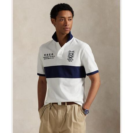 1972年の登場以来、多くの類似製品の出現にもゆるがないアメリカンスタイルをキープしてきた確固たる定番ポロシャツ。数十年を経て、シグネチャースタイルのアイコニックなオリジナルのディテールに対する品質やこだわりはそのままに、多彩なカラーとフィットで新たに登場。レガッタ風コレクションのひとつ。ローイング風の刺繍と紋章のシールドクレストをあしらったバージョン・クラシックフィット:胸、ウエスト、袖にかけてゆったりとしたカット、肘上までかかる低いアームホール・コントラストの効いたリブのポロカラー / 2つボタンの前立て・半袖、コントラストの効いたリブアームバンド・左胸にR.L.P.C.、クロスしたオール、Polo RL 1932-33の刺繍と、ライオンと城のシールドクレスト / 右胸にゴシック体のP.O.L.O.とChampionship Test Match Won October 1st, 1967の刺繍・テニステール・モデル身長185cm、着用サイズM※商品の色味は、光のあたり具合など諸条件により色感が多少異なって見える場合がございますので予めご了承下さい。 【素材】・本体:綿 100% 装飾部分を除く【生産国】インドネシア
