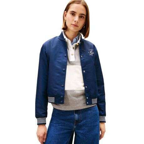 コンパクトなサイズ感とクロップ丈で、フェミニンな印象に仕上げたボンバージャケット。バーシティジャケットをベースにしたカジュアルなデザインで、左胸のロゴやリブのライン使いがアクセントです。シンプルなコーデに羽織るだけで、スタイルを格上げ。ポロシャツやラガーシャツとのレイヤードもおすすめです。