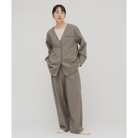 【きちんと感とモードさを兼ね備えたノーカラージャケット】