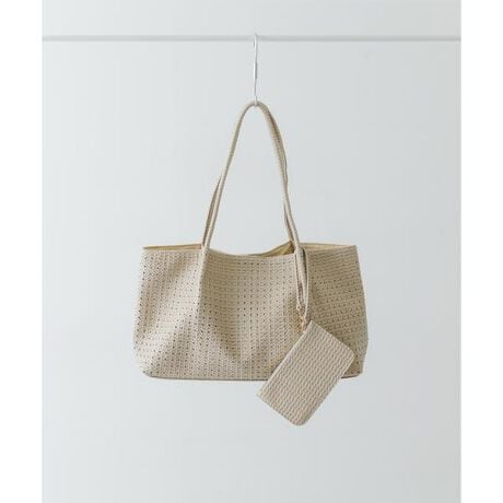 メッシュのようなパンチングデザインが目を惹く、トートバッグ。