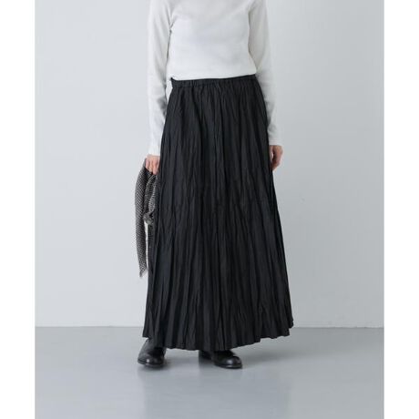 重くなりがちな冬の装いに軽さを与えるスカート。クリンクル加工により表面に凹凸のある綿生地を使用しています。くしゅっとした表情が魅力的で、一気に存在感のあるスタイリングが叶います。キュプラのペチコートが付いているので透けを気にせず着用できるのも嬉しいポイント。加工を施していますが天然素材のため着用/洗濯を重ねると落ちていきます。アテンションをご確認の上、絞って保管していただくと形状が保たれやすいです。