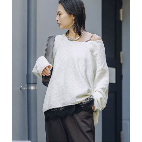 その日の気分次第でカジュアルにも綺麗めにも使える万能ニットです。