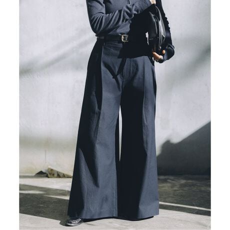 着心地:程よくハリのあるワイドパンツ。カジュアルすぎない、コットン素材の穿きやすいワイドです。