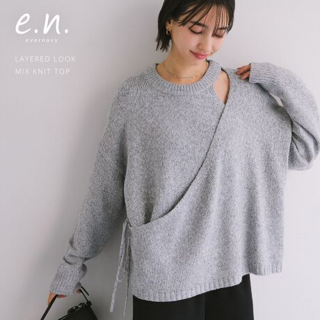 フェイクレイヤード 長袖 ニット トップス evernavy エバーネイビー