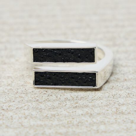 シルバー950と黒桟革を組み合わせた手仕事のジュエリーは、光と影が寄り添い、時間とともに深まる美しさを指先や手首で感じられます。