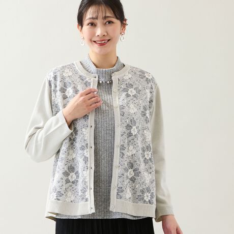 ◆温もり感のあるレースが美しいニットカーディガン◆
