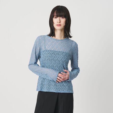 一枚でシアー感を楽しむのはもちろん、カットソーやニット、シャツと重ねて首元や袖口から覗かせた、女性らしさを添えるポイント使いにも◎。