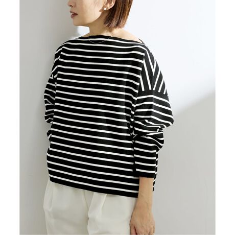 綿素材をベースにしたダンボール編みのダブルボーダープルオーバー。