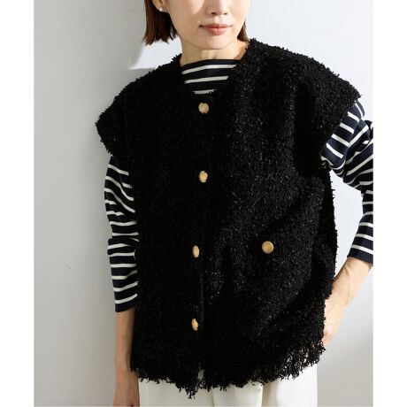 小さなスパンコールを織り込んだイタリア糸と、表情豊かなファンシーヤーンを掛け合わせた、IENAオリジナルのツイードニットベスト。