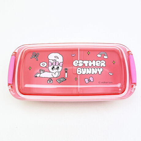 フタのクリアピンクがとってもカワイイ!全部ピンクなエスターバニーランチボックスです。パッキン溝の幅が広い構造で洗いやすいお弁当箱。ドーム型のフタで、ふわっとご飯やおかずが詰められる。高めの仕切り付きでおかずが片寄りにくい!しっかり簡単2点ロック!フタを外して電子レンジOK!食洗機OK!!容量:530ml
