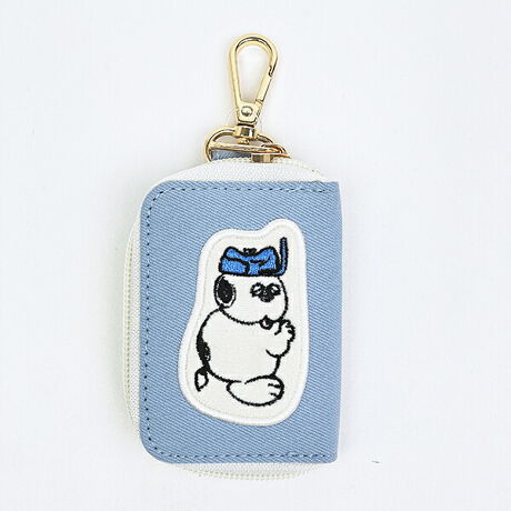 スヌーピー スマートキーケース ブルー アップリケ SNOOPY