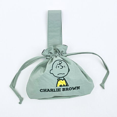 スヌーピー チャーリーブラウン 巾着バッグ アップリケ刺繍 ランチ SNOOPY