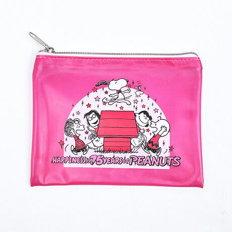 スヌーピー75周年のデザインが可愛いクリアポーチです。クリアなので中身が確認できて便利☆小物入れやコスメポーチとしてもお使いいただけます♪