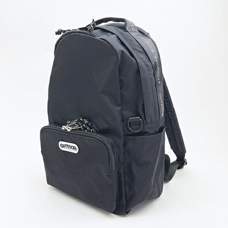 OUTDOOR PRODUCTS ラスターツイル ロゴプリントリュック ブラック アウトドアプロダ
