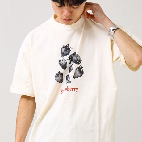 #FREDY&GLOSTER #GLOSTER #フルーツプリントT #グラフィックT #大人カジュアル #シンプルコーデ #モノトーンプリント #26SS #春夏コーデ #ユニセックス #一枚着 #レイヤードスタイル