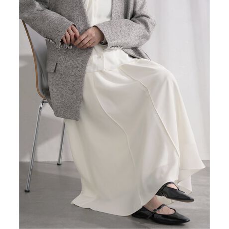 強撚コットンのようにさらりとしたタッチが魅力の、シワになりにくいポリエステル素材を使用したスカート。
